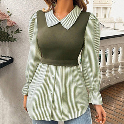 Женская однобортная блузка в полоску с длинным рукавом