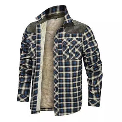 Rnshanger Áo sơ mi lông cừu mùa đông nam mùa thu Áo khoác cotton kẻ sọc dài tay áo ấm đường phố dày Áo khoác ngoài nam