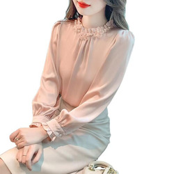 Rnshanegr Hàn Quốc OL nữ áo cho phụ nữ giản dị dài tay áo đứng cổ áo ngọc trai beading mô hình rắn văn phòng phụ nữ áo sơ mi