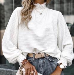 Bán Buôn Phụ Nữ Mùa Xuân Mùa Hè Ruffles Áo Dài Tay Áo T Áo Sơ Mi Hàng Đầu Màu Sắc Rắn Thời Trang Giản Dị Áo Sơ Mi