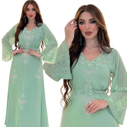 Rnshanger Polyester hồi giáo abaya bên ăn mặc cho phụ nữ Arab kim cương ren-up abayas dài Dresses áo phụ nữ thanh lịch Dresses